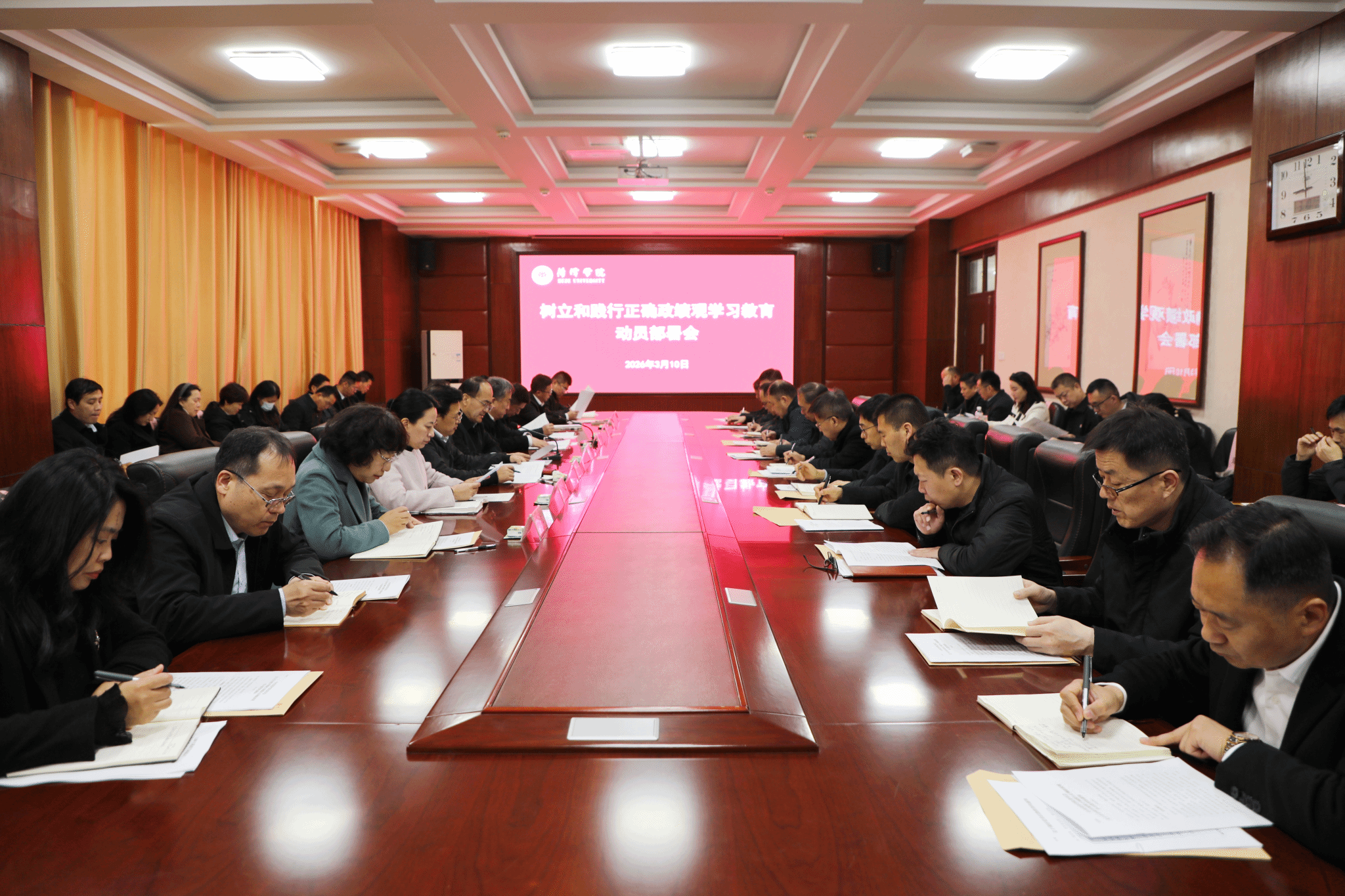 会议传达学习了习近平总书记关于在全党开展树立和践行正确政绩观学习教育的重要指示精神,研究审议了学校树立和践行正确政绩观学习教育工作方案。