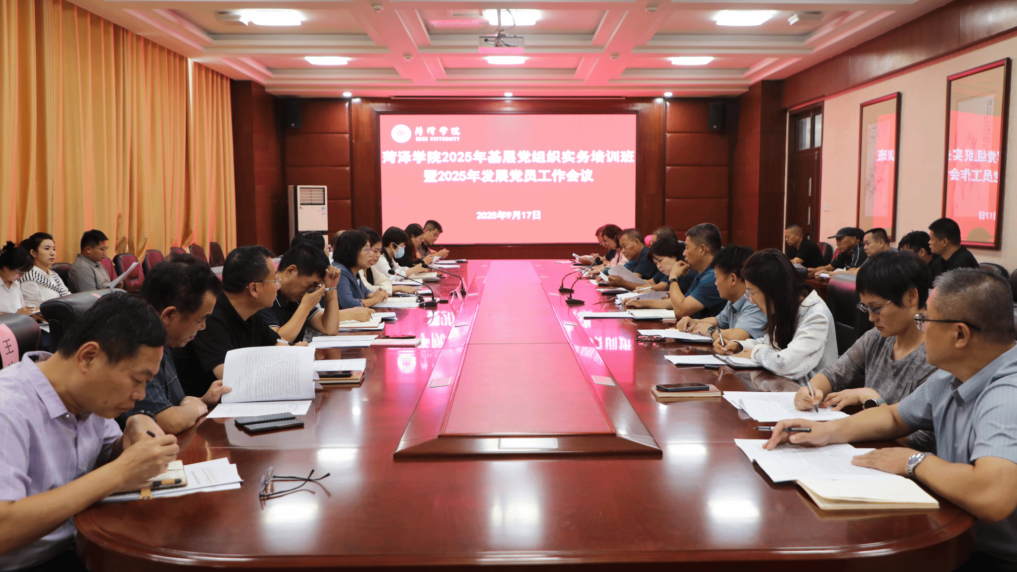 根据学校党委安排部署,9月17日下午,菏泽学院在图书馆第一会议室举办了2025年基层党组织实务培训班暨2025年发展党员工作会议。学校党委委员、组织部部长潘峰出席并讲话。组织部正处级组织员、机关党委书记吕杰,各二级学院(分校)党委副书记、专职组织员和具体负责发展党员工作人员参加了会议。